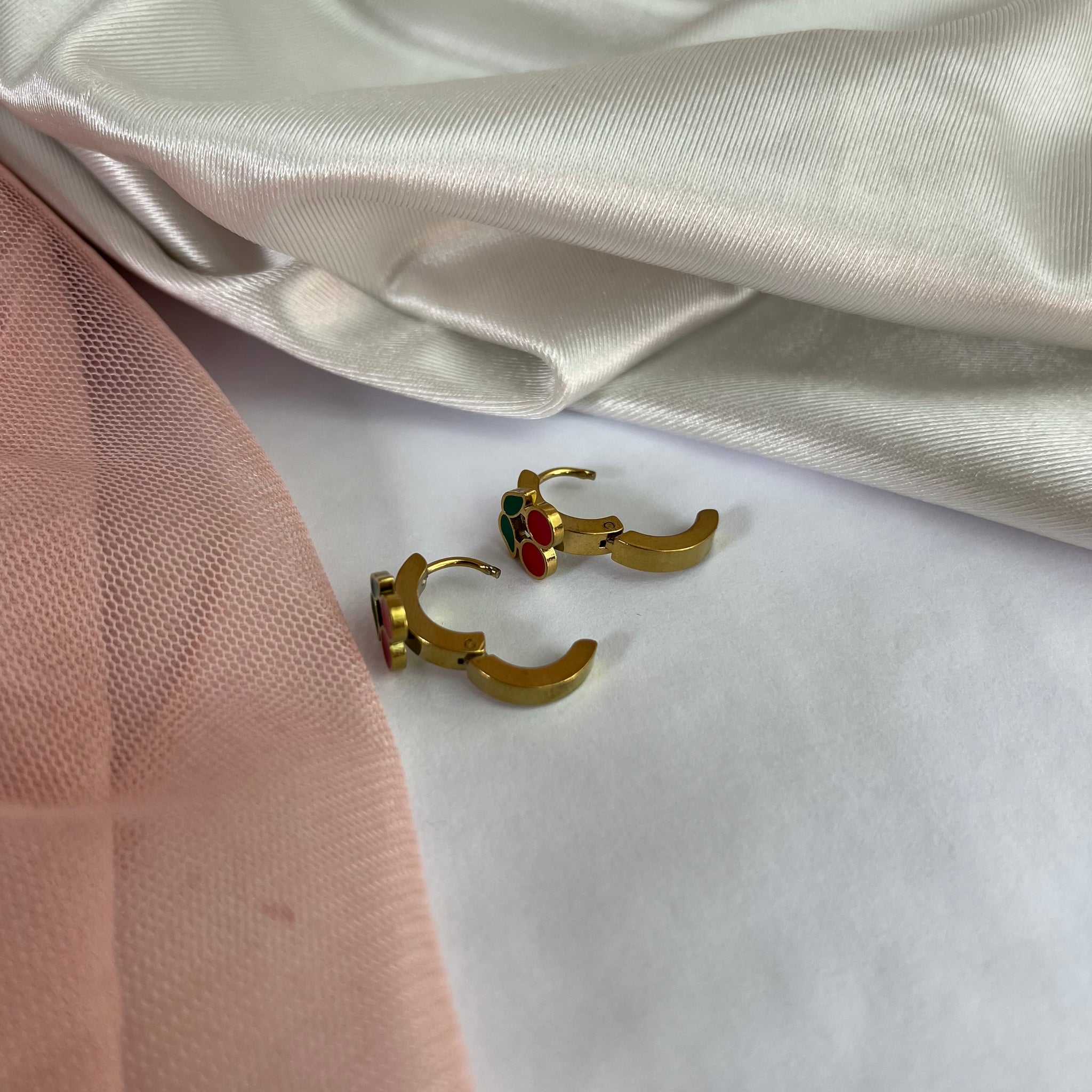 Brincos em aço inoxidável. Resistentes à água, hipoalergênicos e não escurecem nem descascam.
