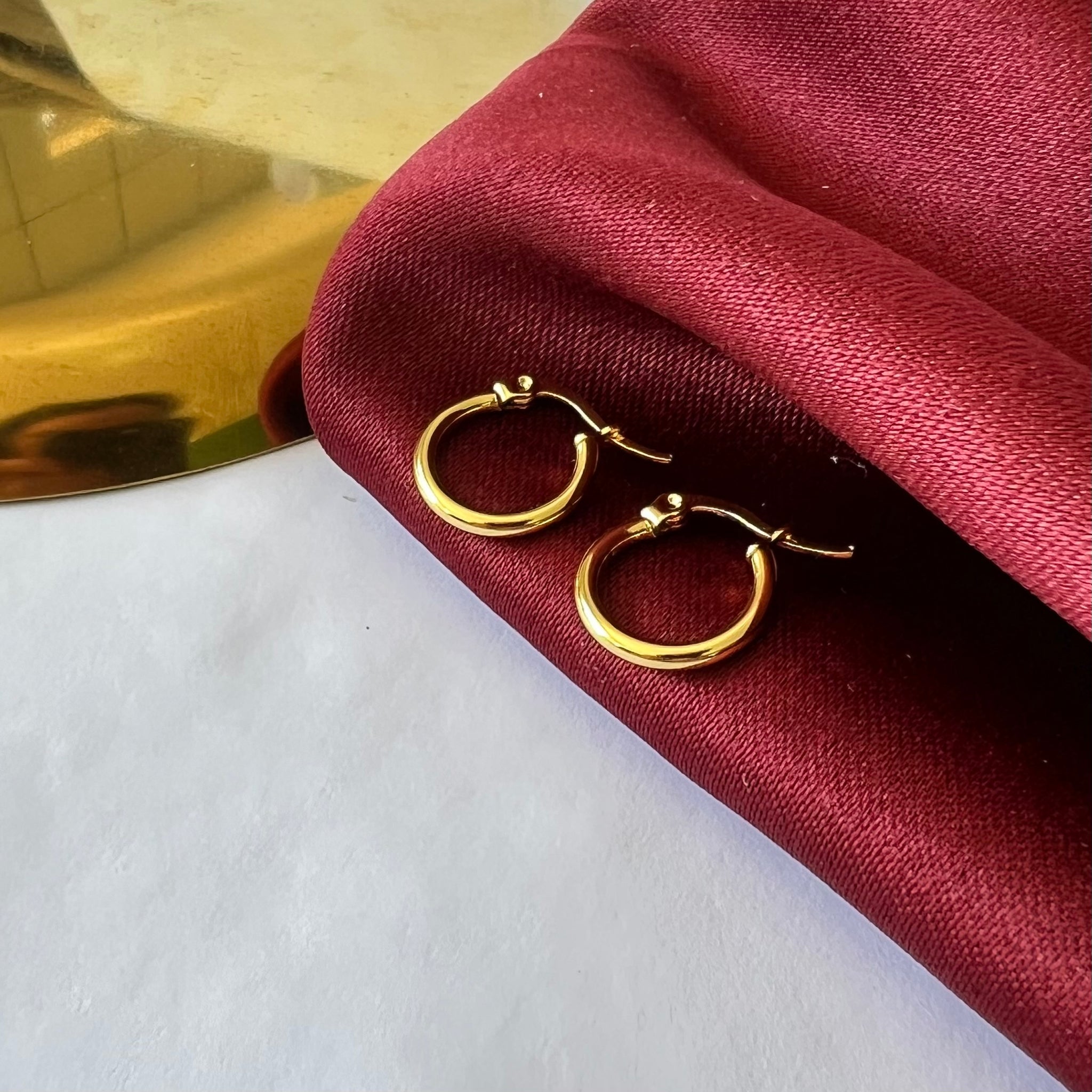 Brincos em aço inoxidável. Resistentes à água, hipoalergênicos e não escurecem nem descascam.