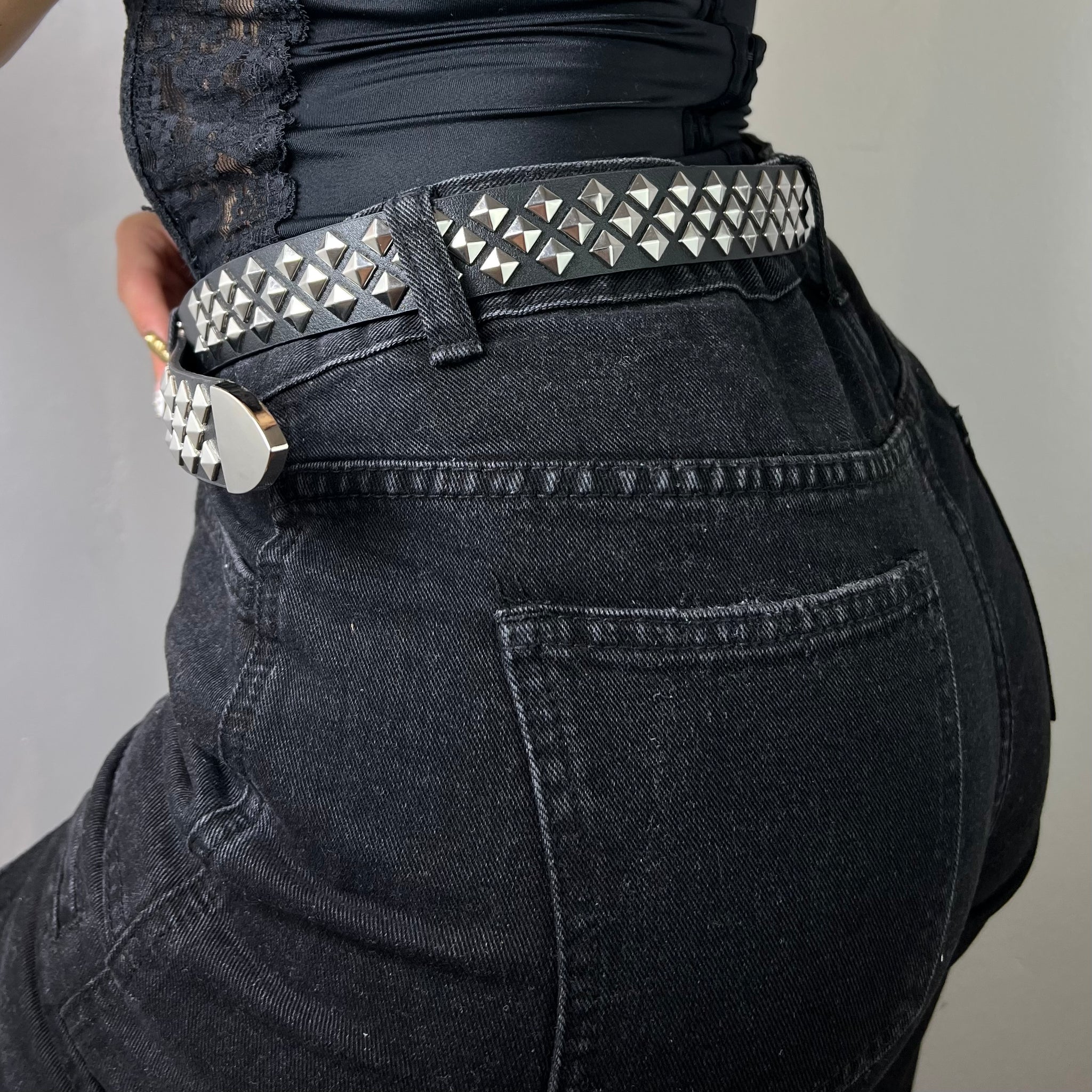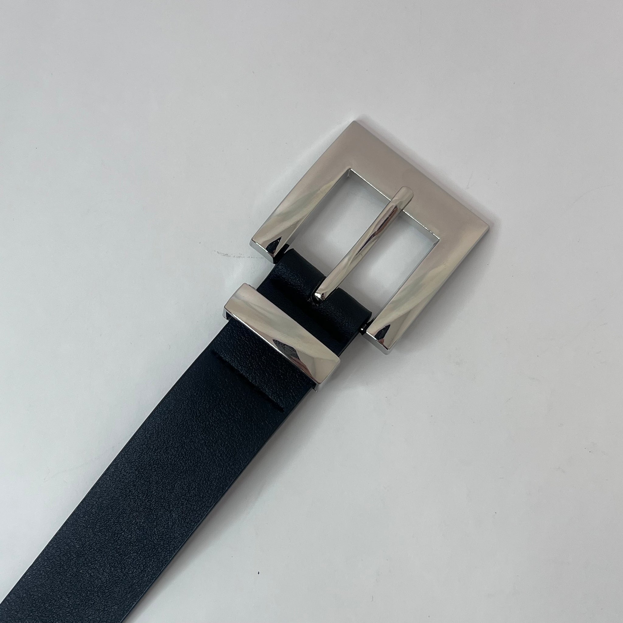 Cinto em material couro sintético, com fivela metálica. Ajustável e resistente.