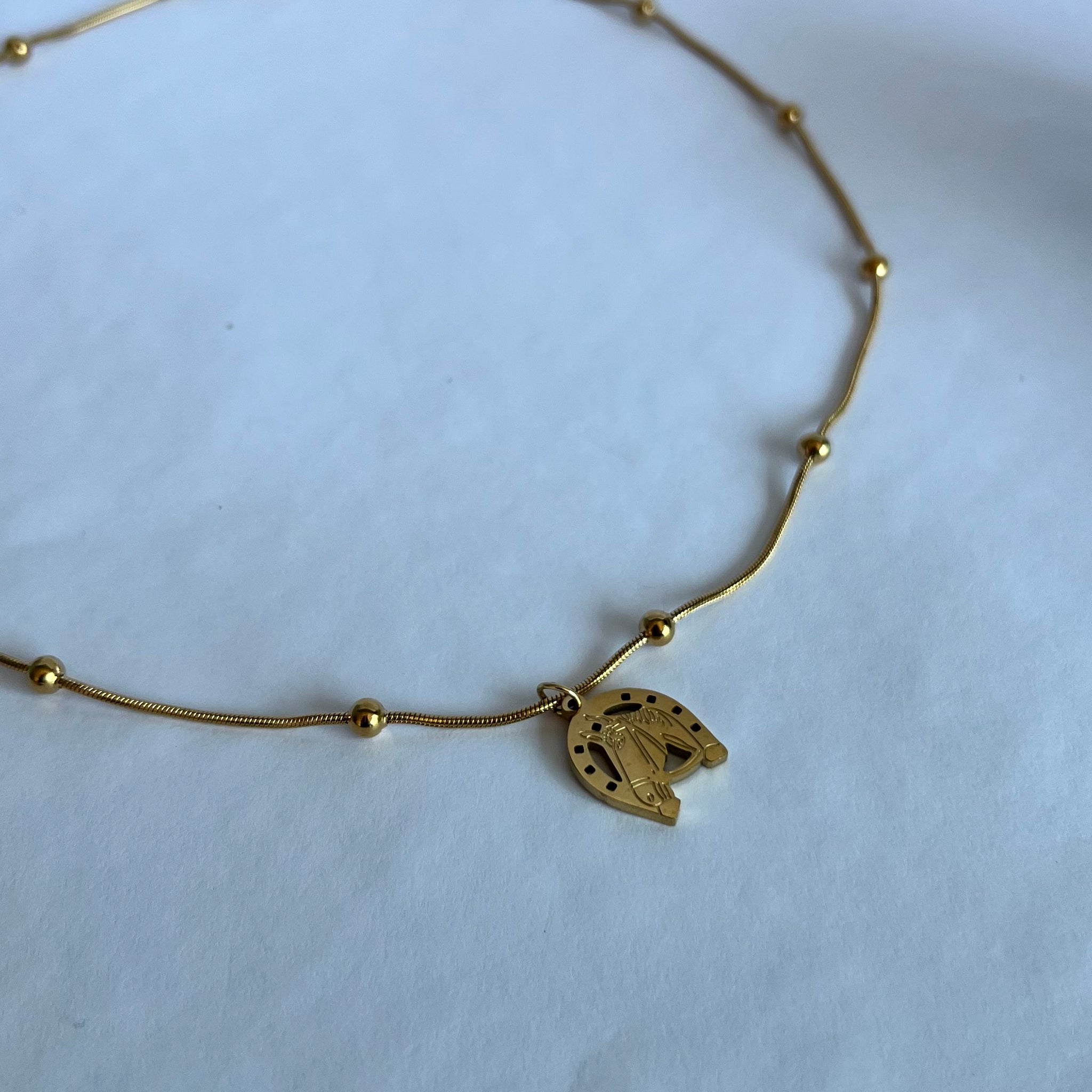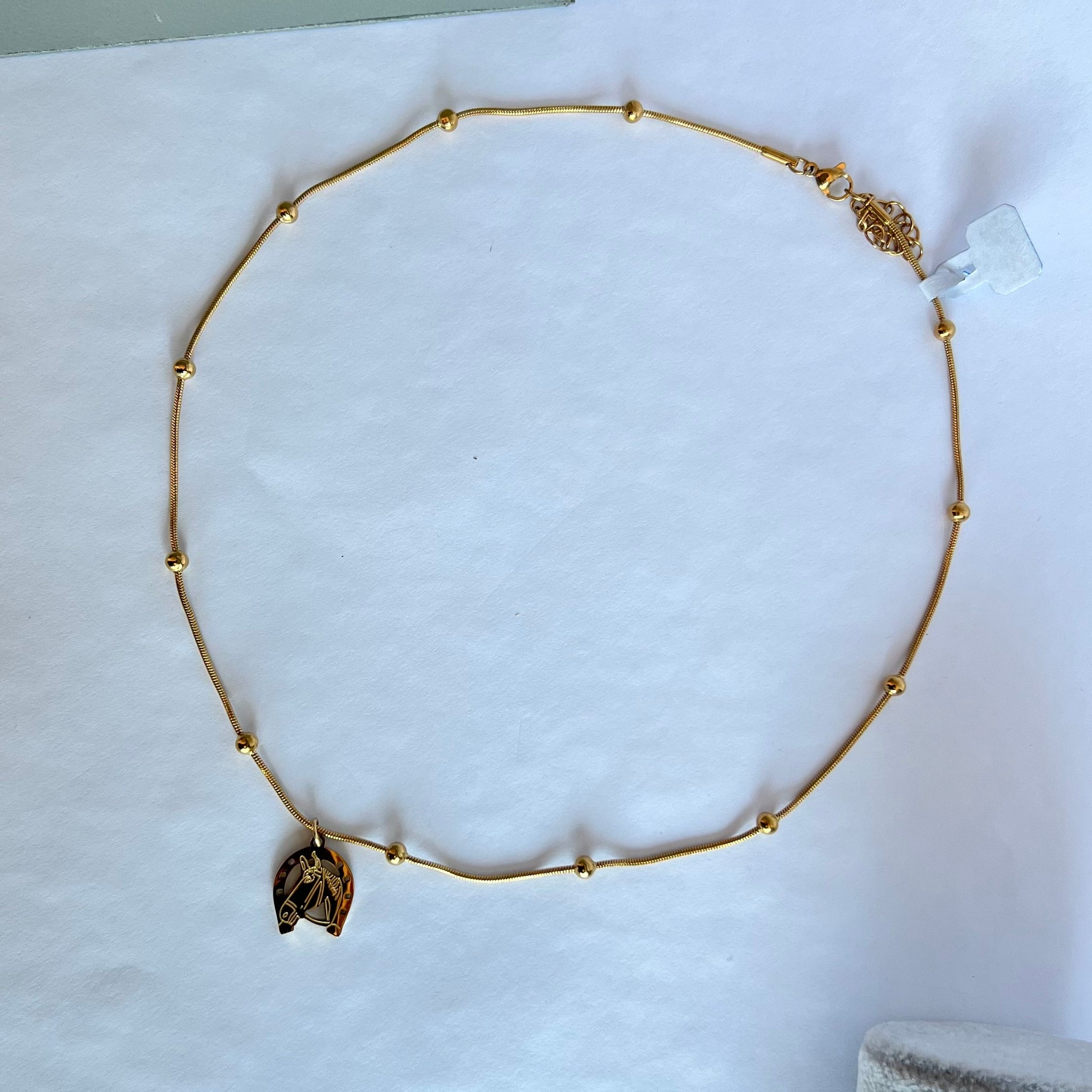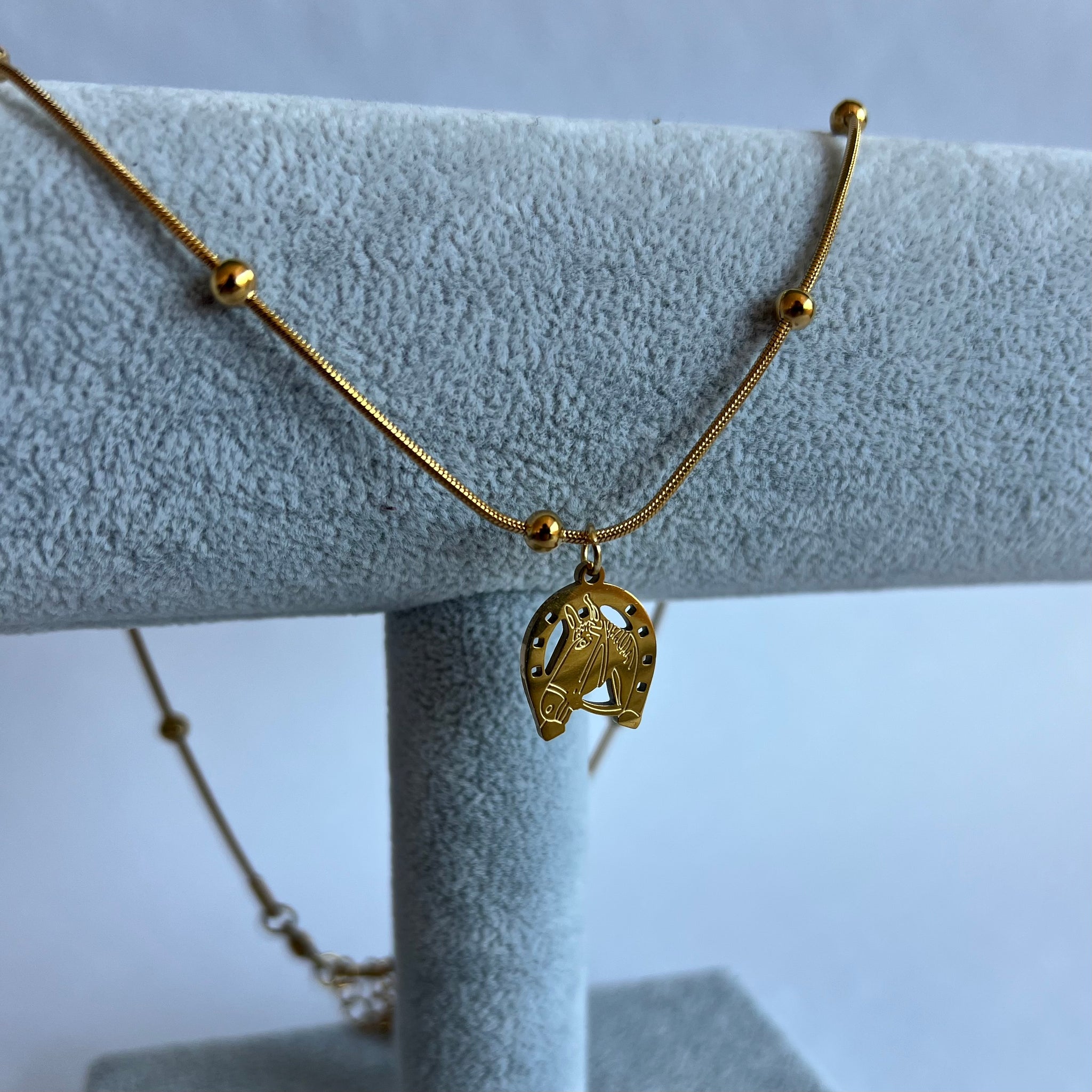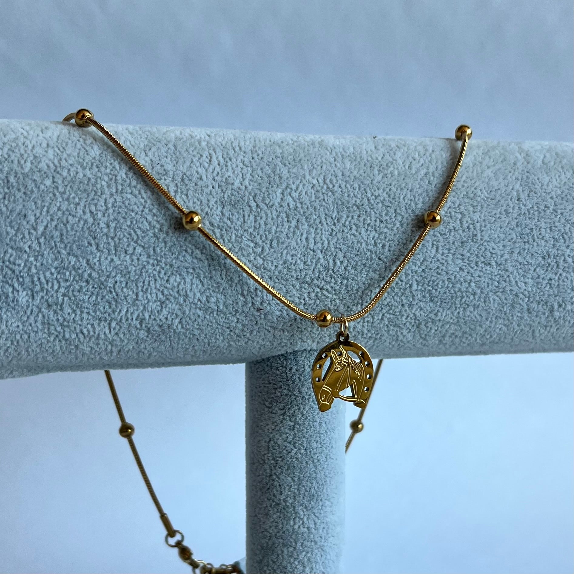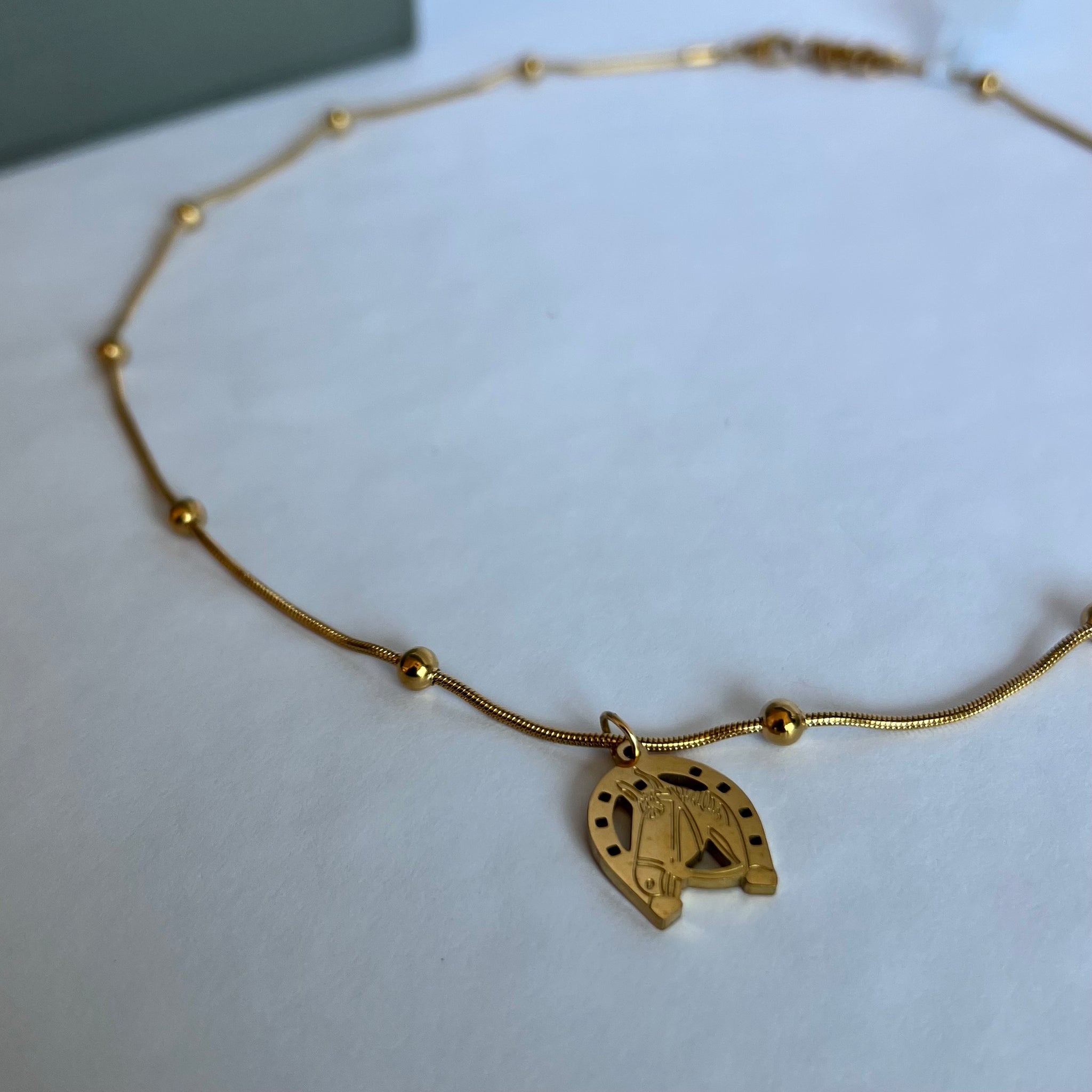 Colar em aço inoxidável. Resistente à água, hipoalergênico e não escurece nem descasca. Não é regulável.