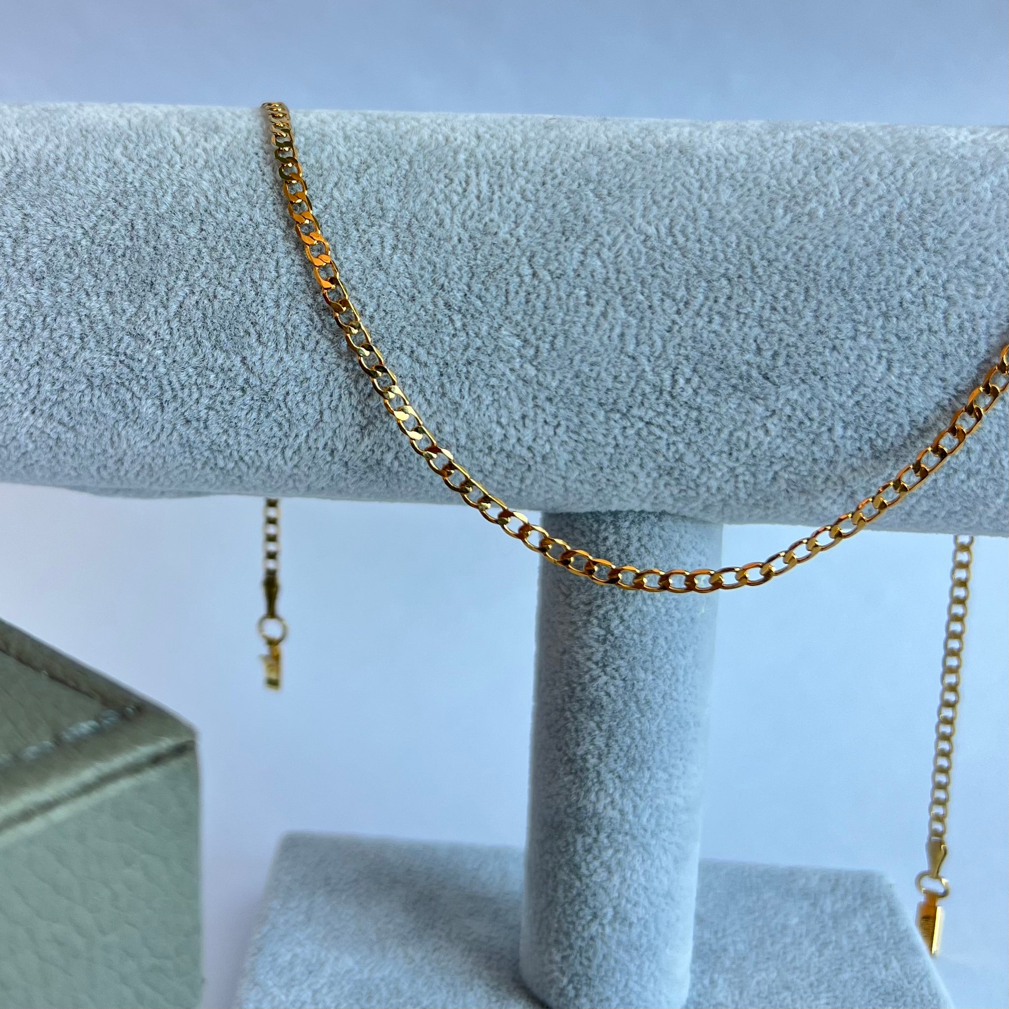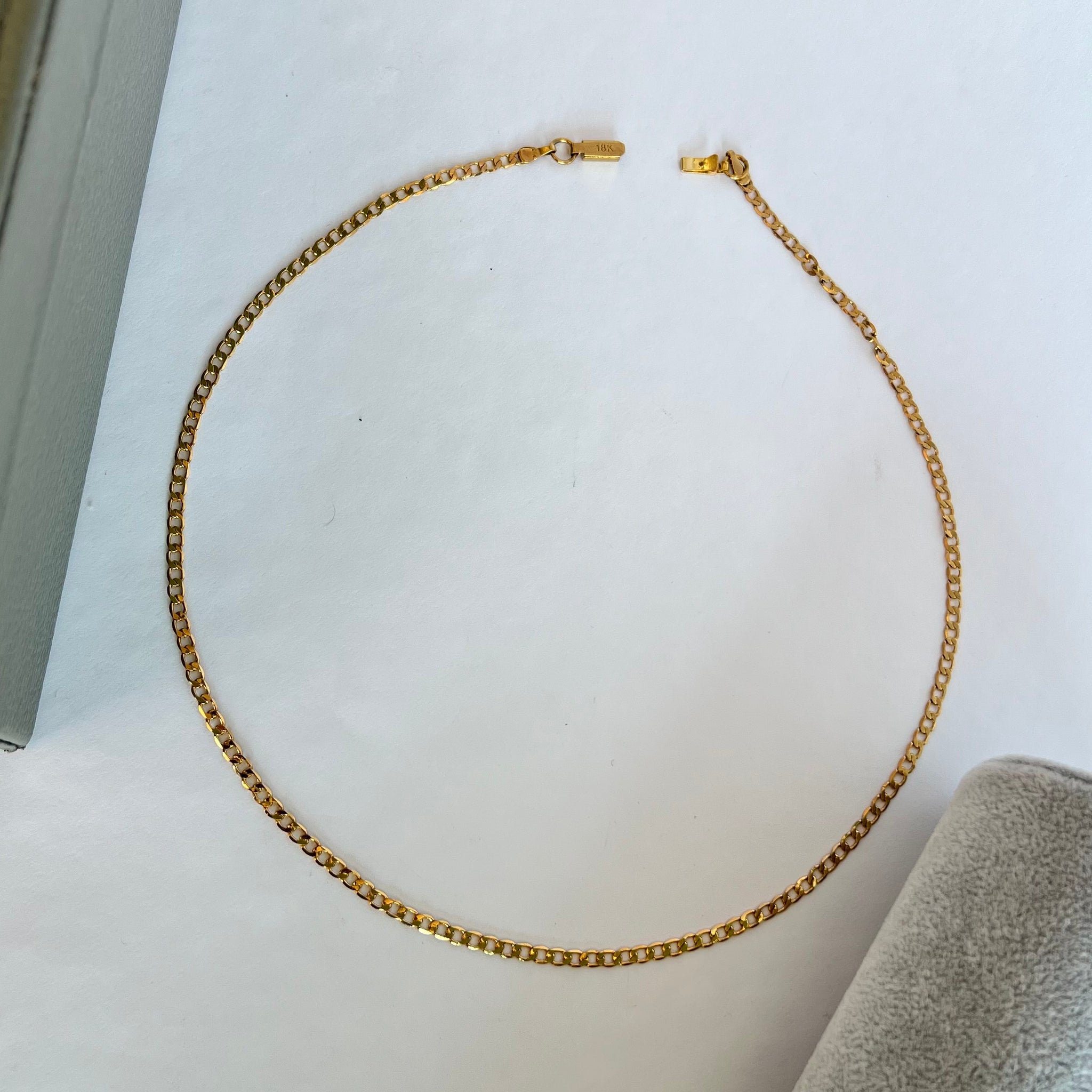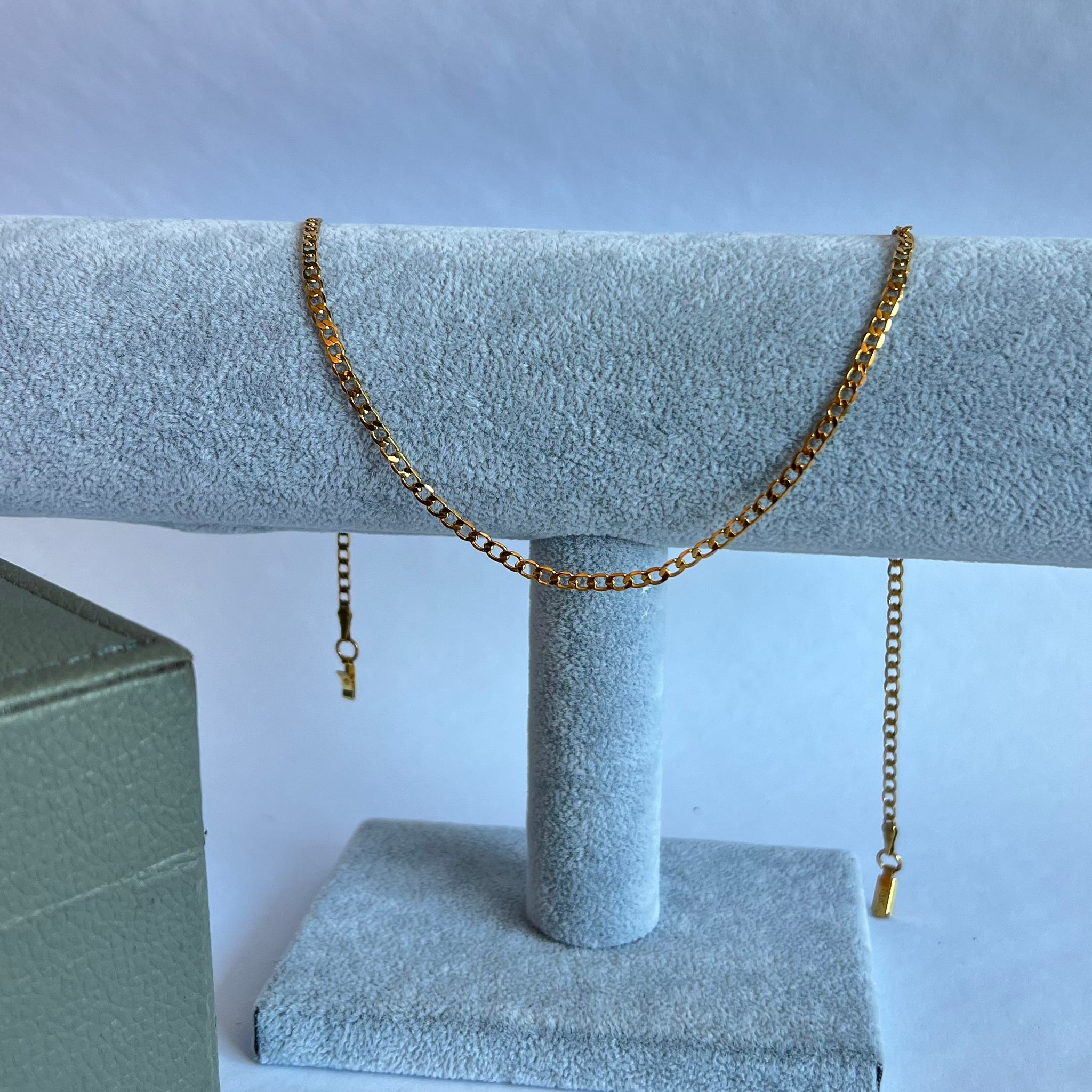 Colar em aço inoxidável. Resistente à água, hipoalergênico e não escurece nem descasca. Não é regulável.