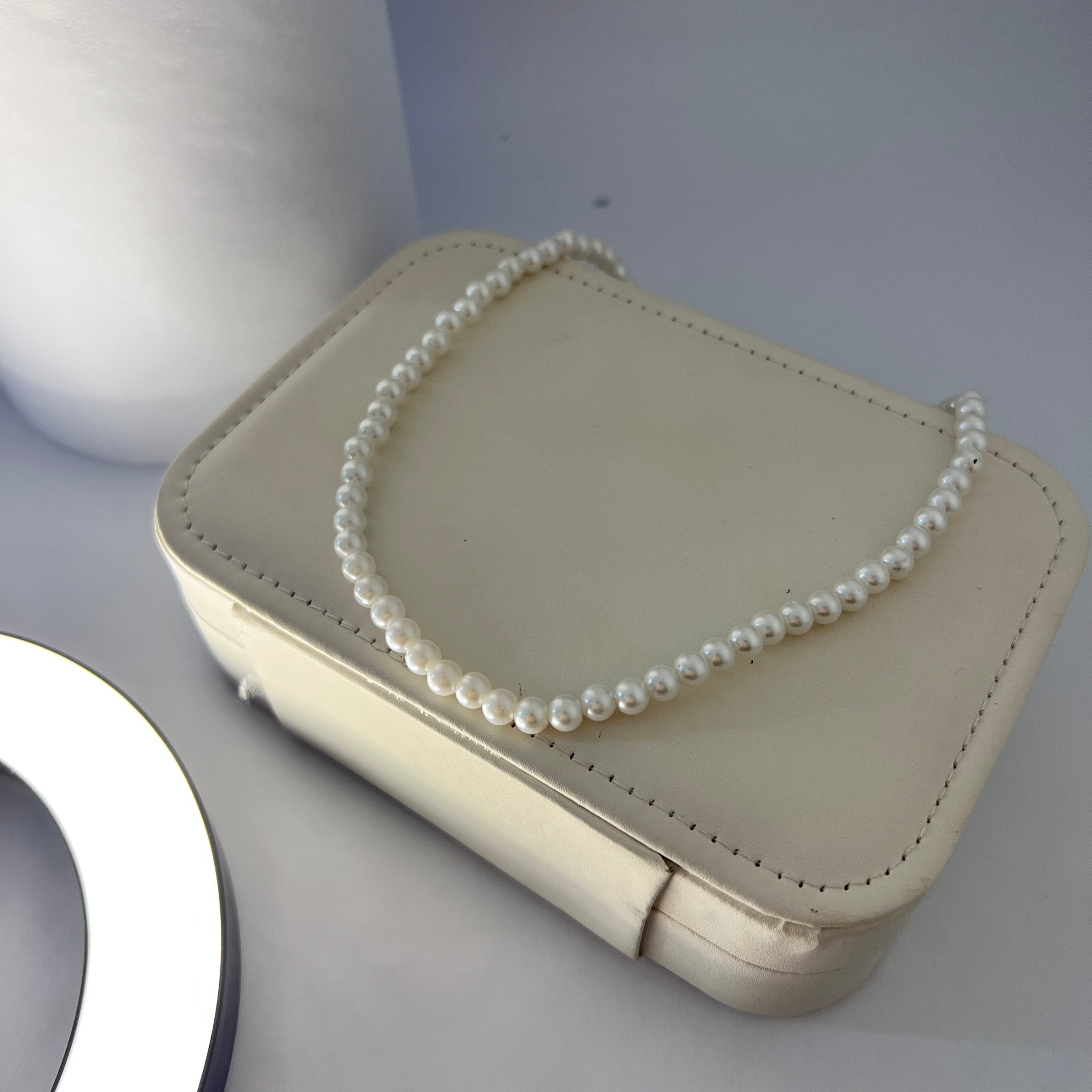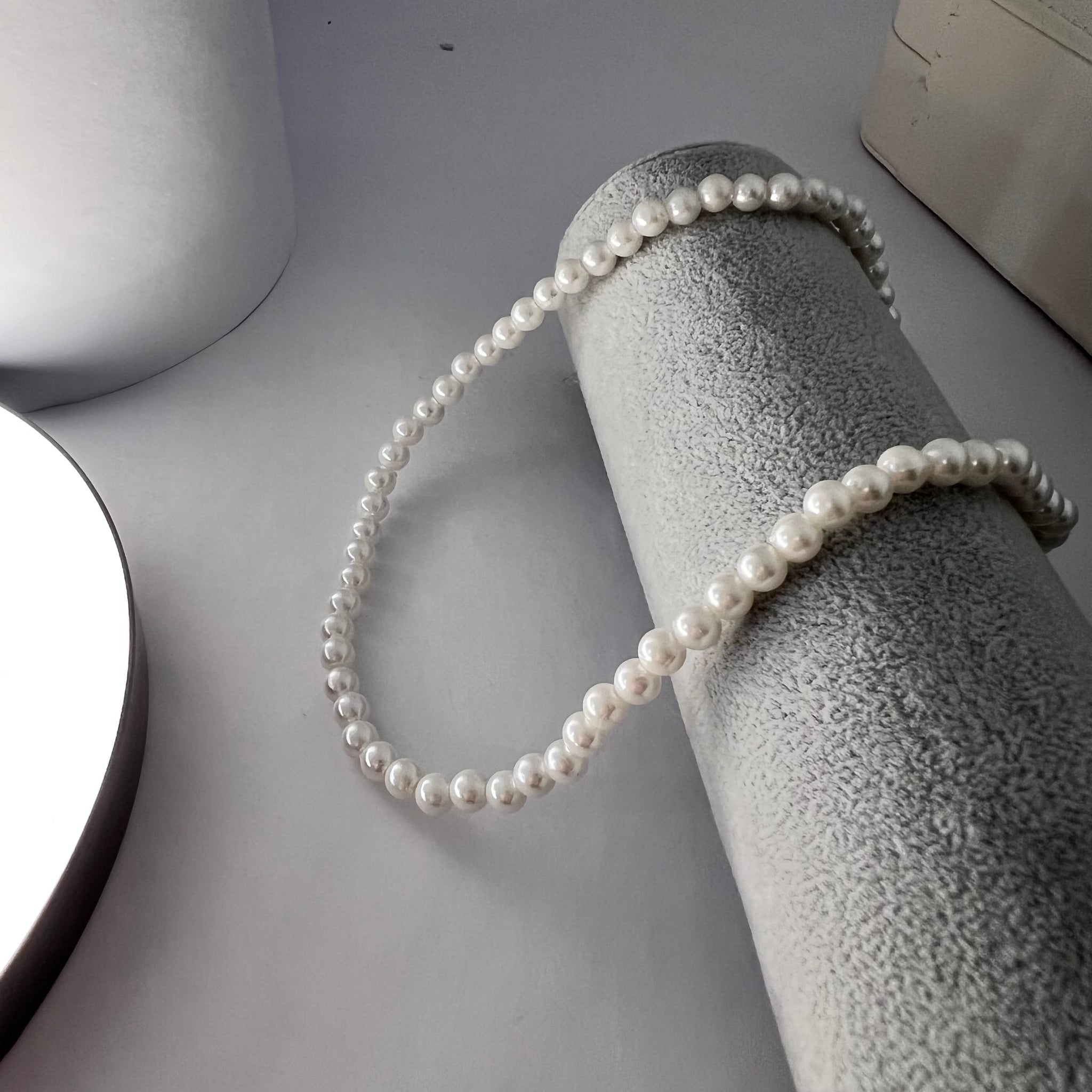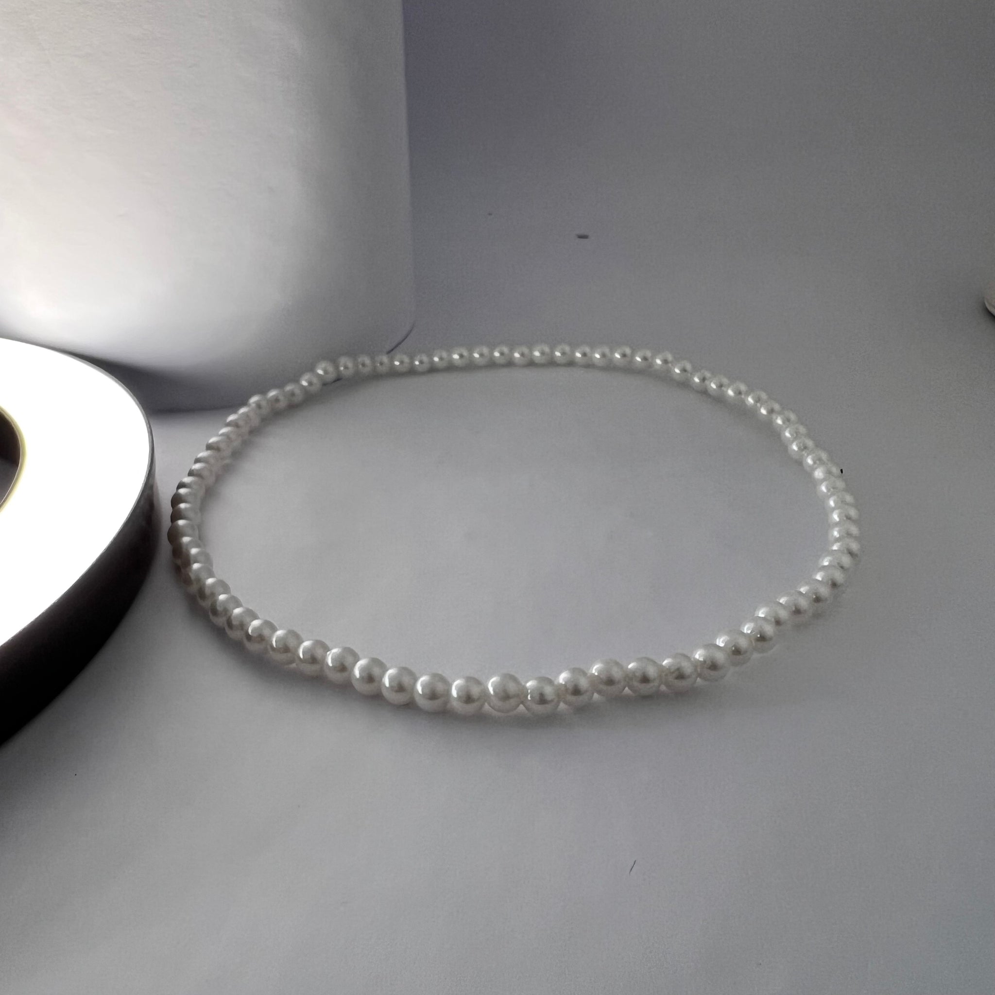 Colar Perolado em miçanga, sem regulagem, resistente à água, com elástico.