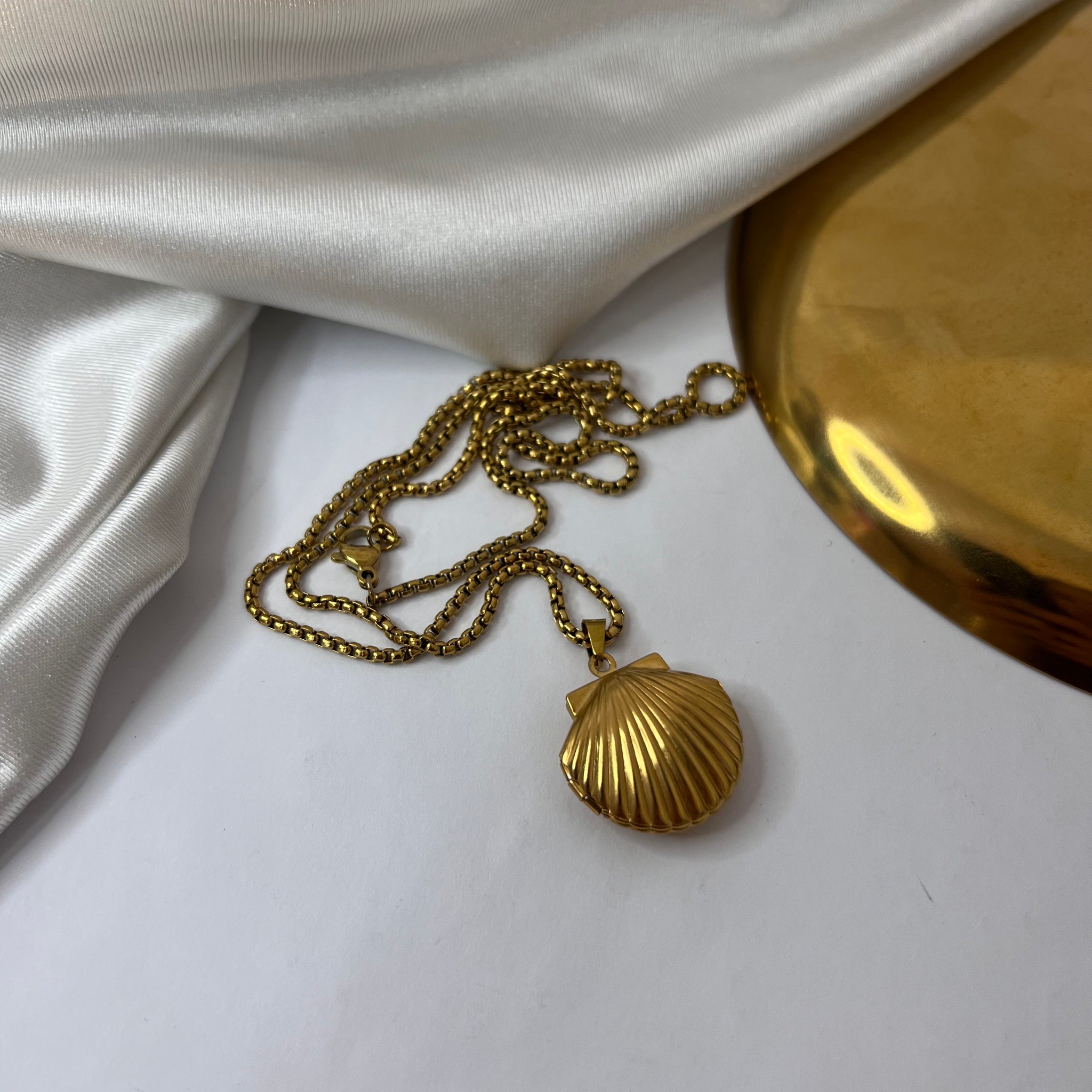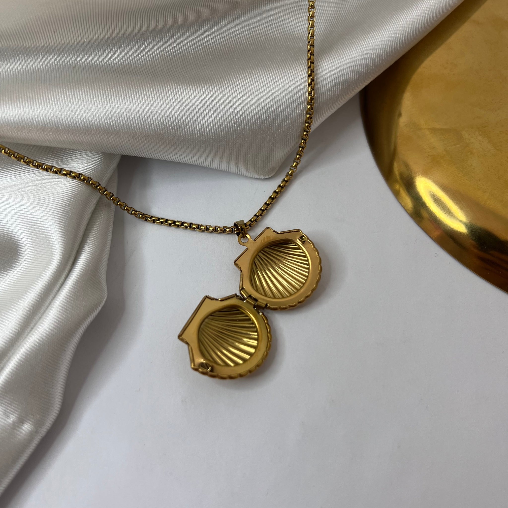 Colar Relicário em aço inoxidável. Resistente à água, hipoalergênico e não escurece nem descasca. Não é regulável.