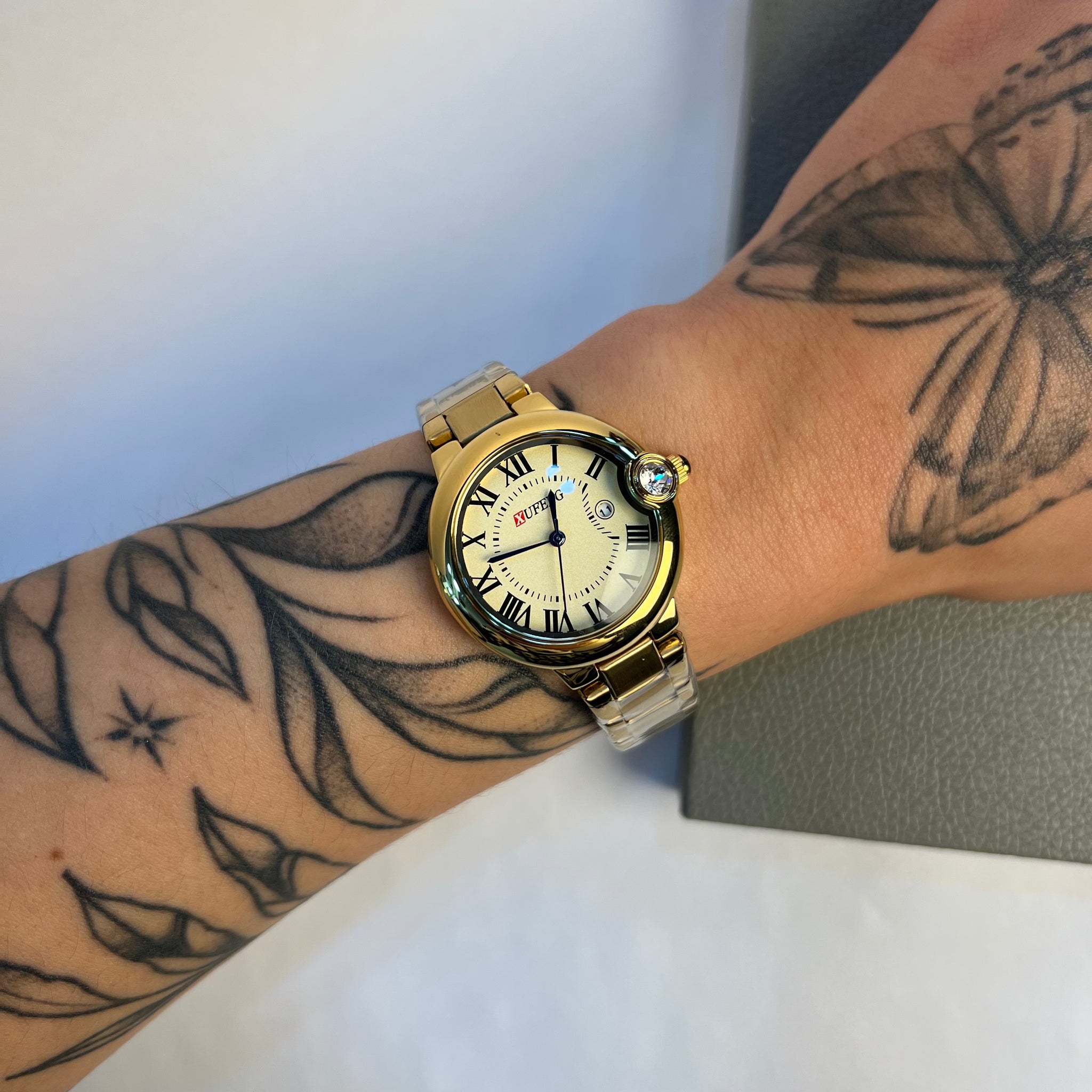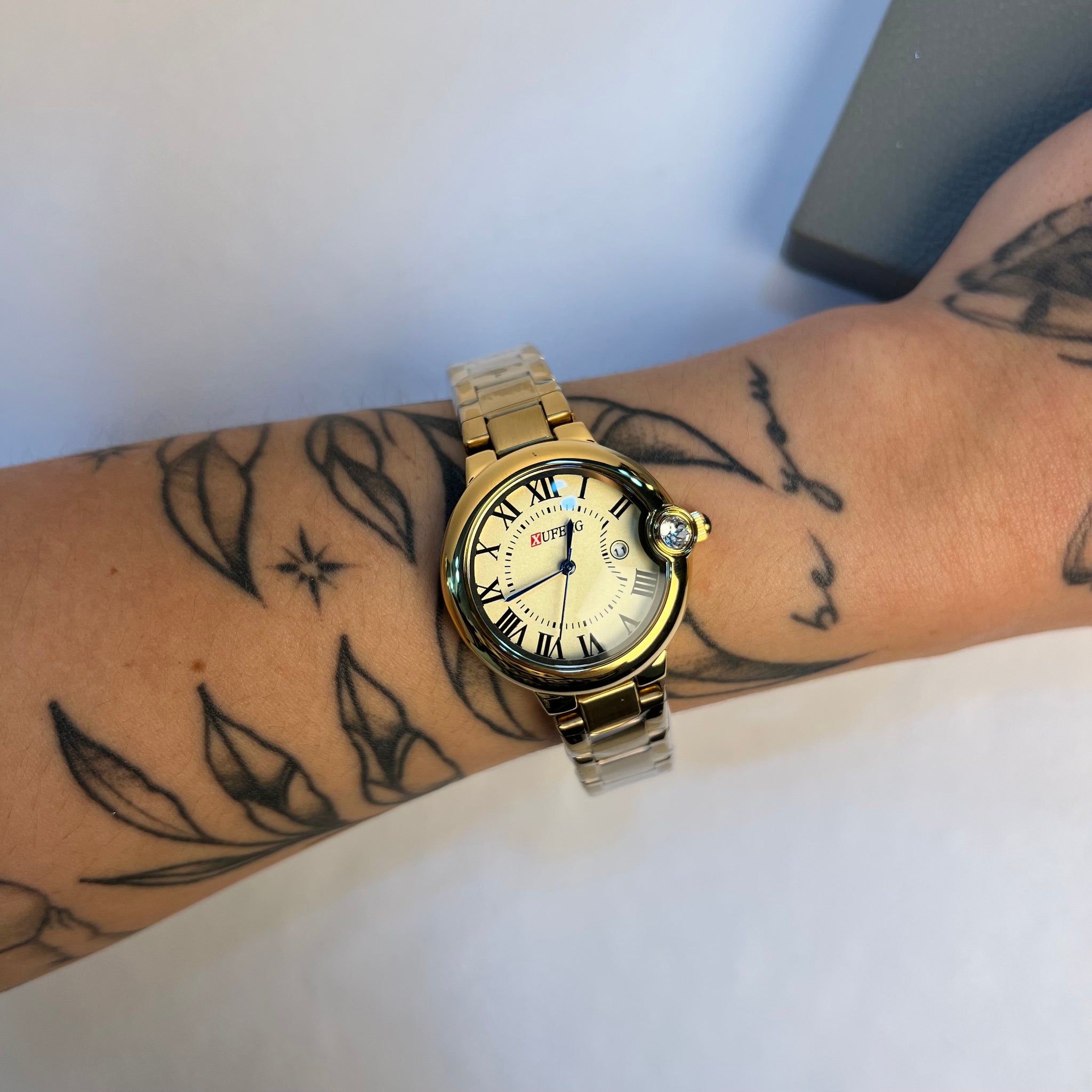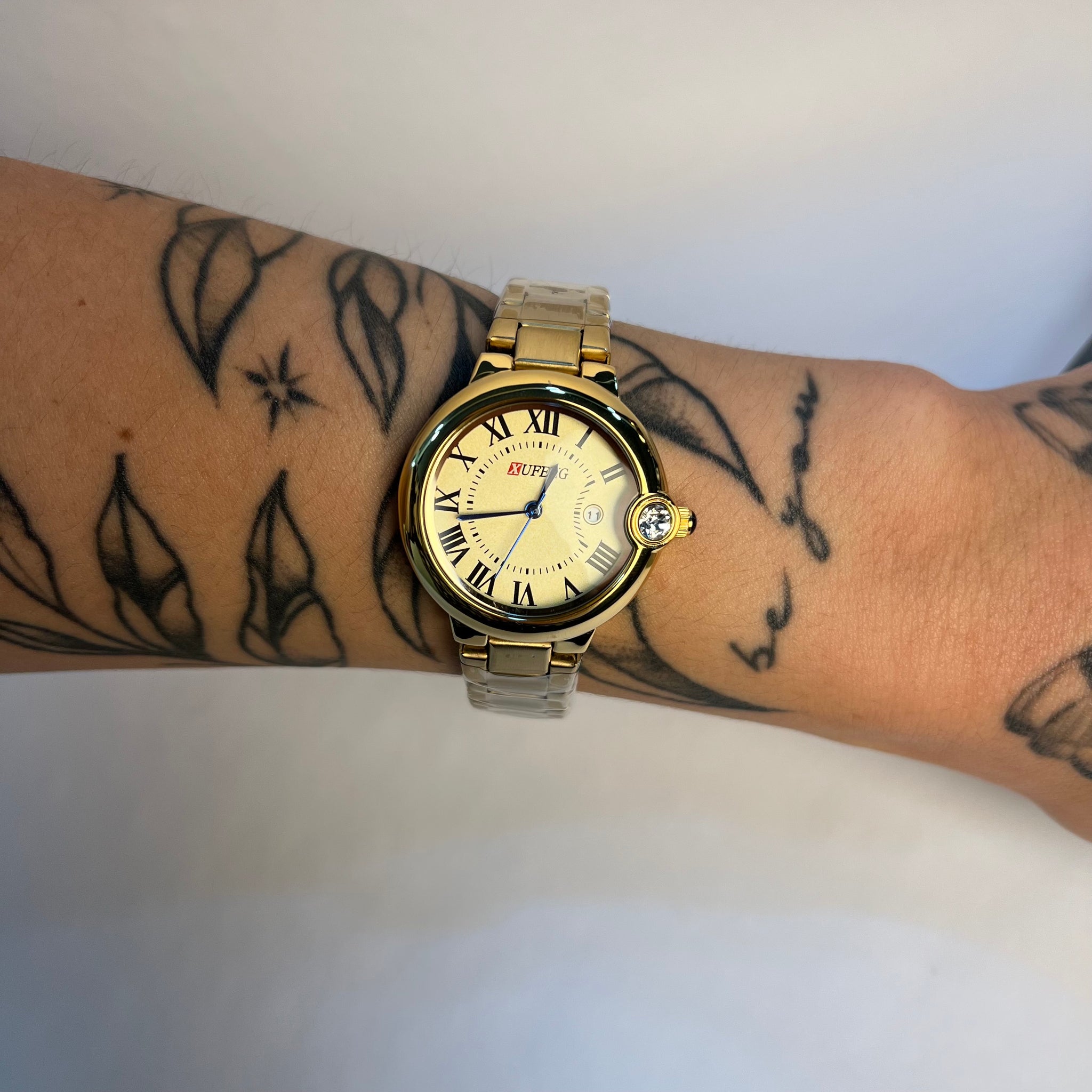 Relógio Retrô - Com calendário e Pulseira de elos reguláveis