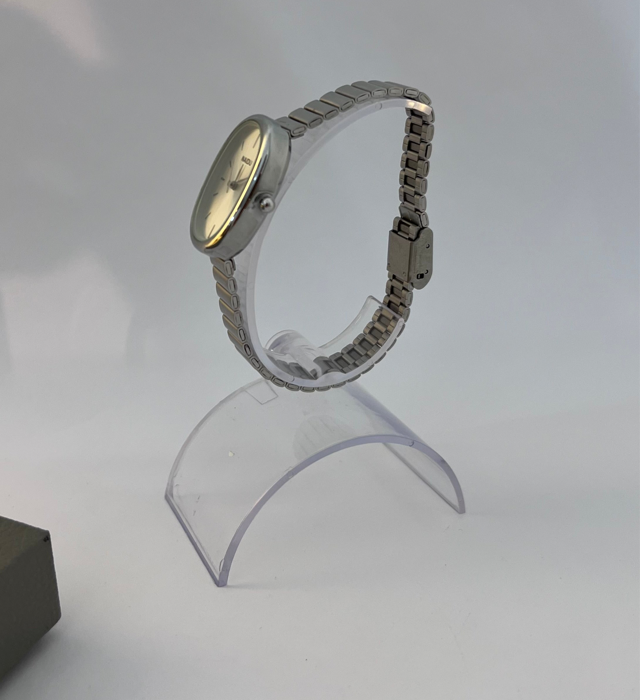 Relógio com pulseira em aço inoxidável e caixa em liga de zinco de alta resistência. Mecanismo analógico, visor em vidro mineral, regulável.