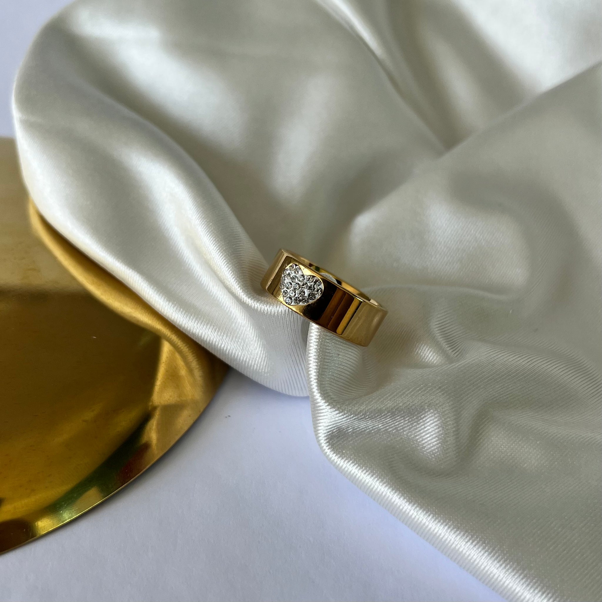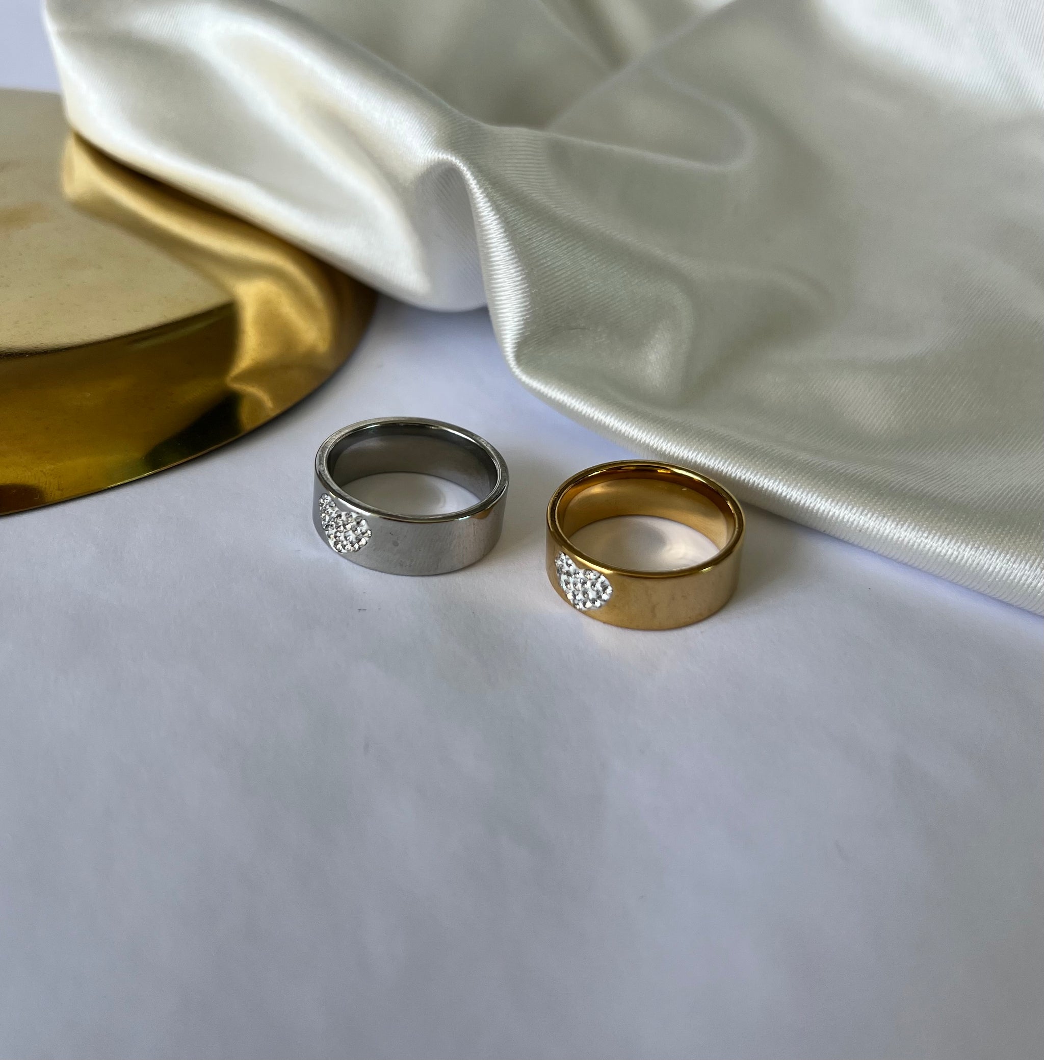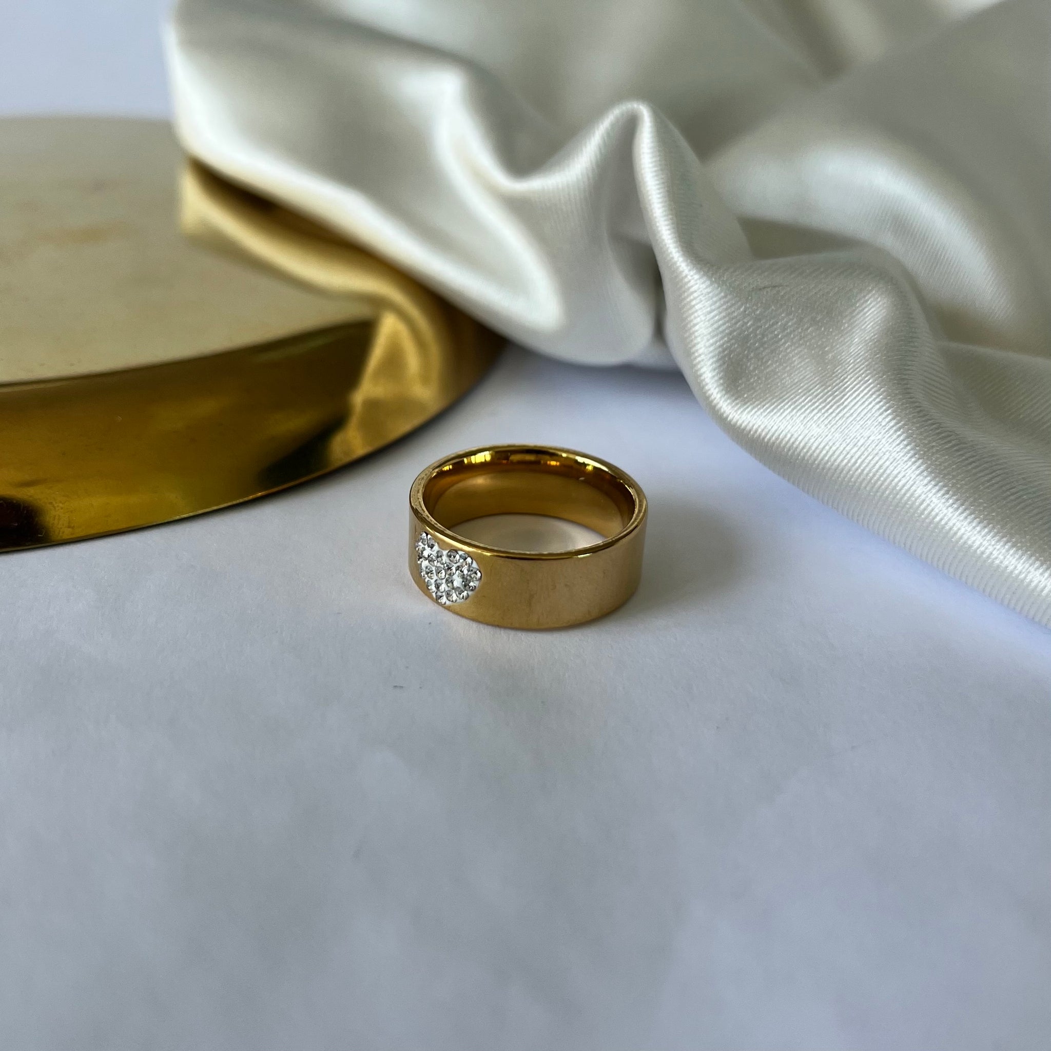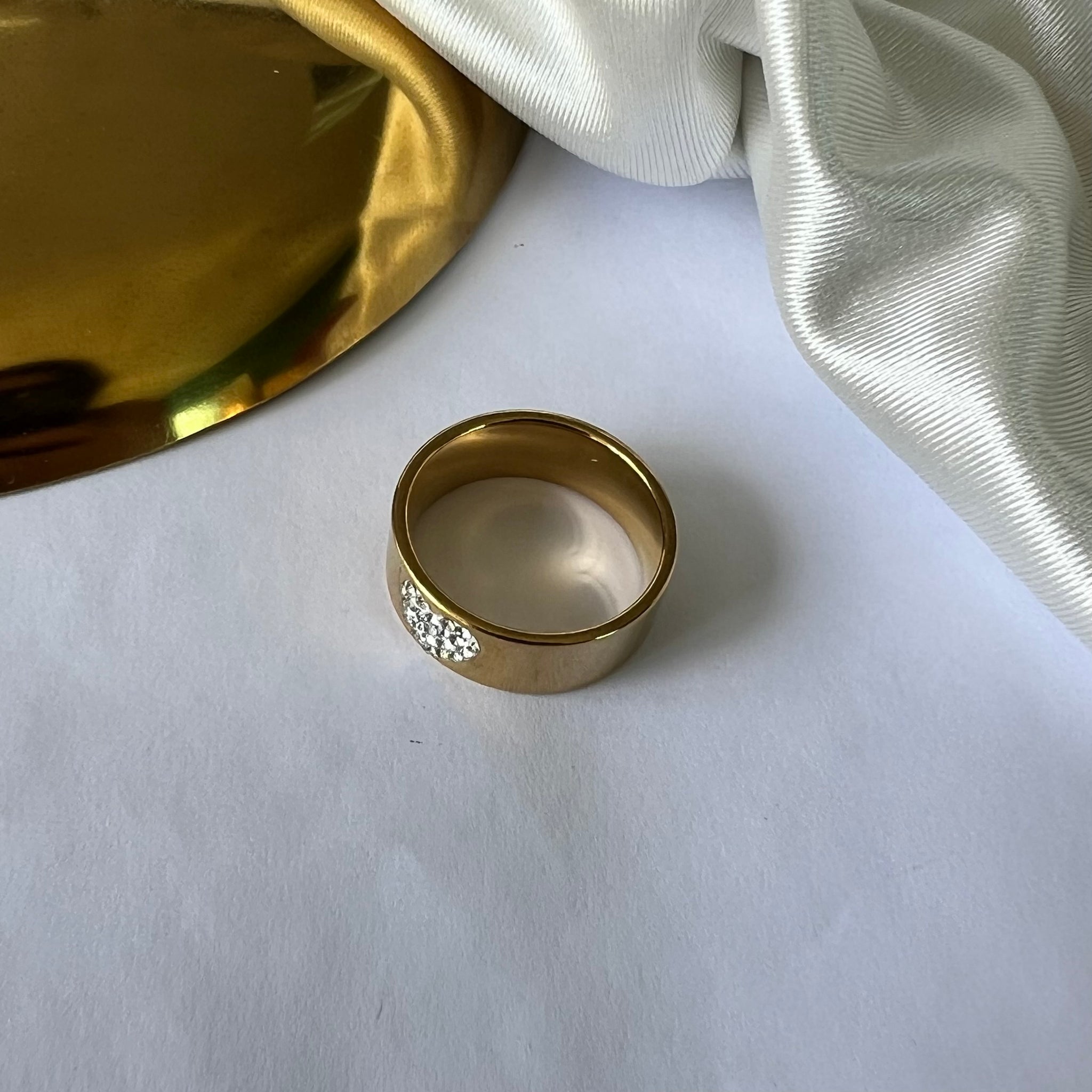 Anel em aço inoxidável. Com pedras em zircônia. Resistente à água, hipoalergênicos e não escurece nem descasca.