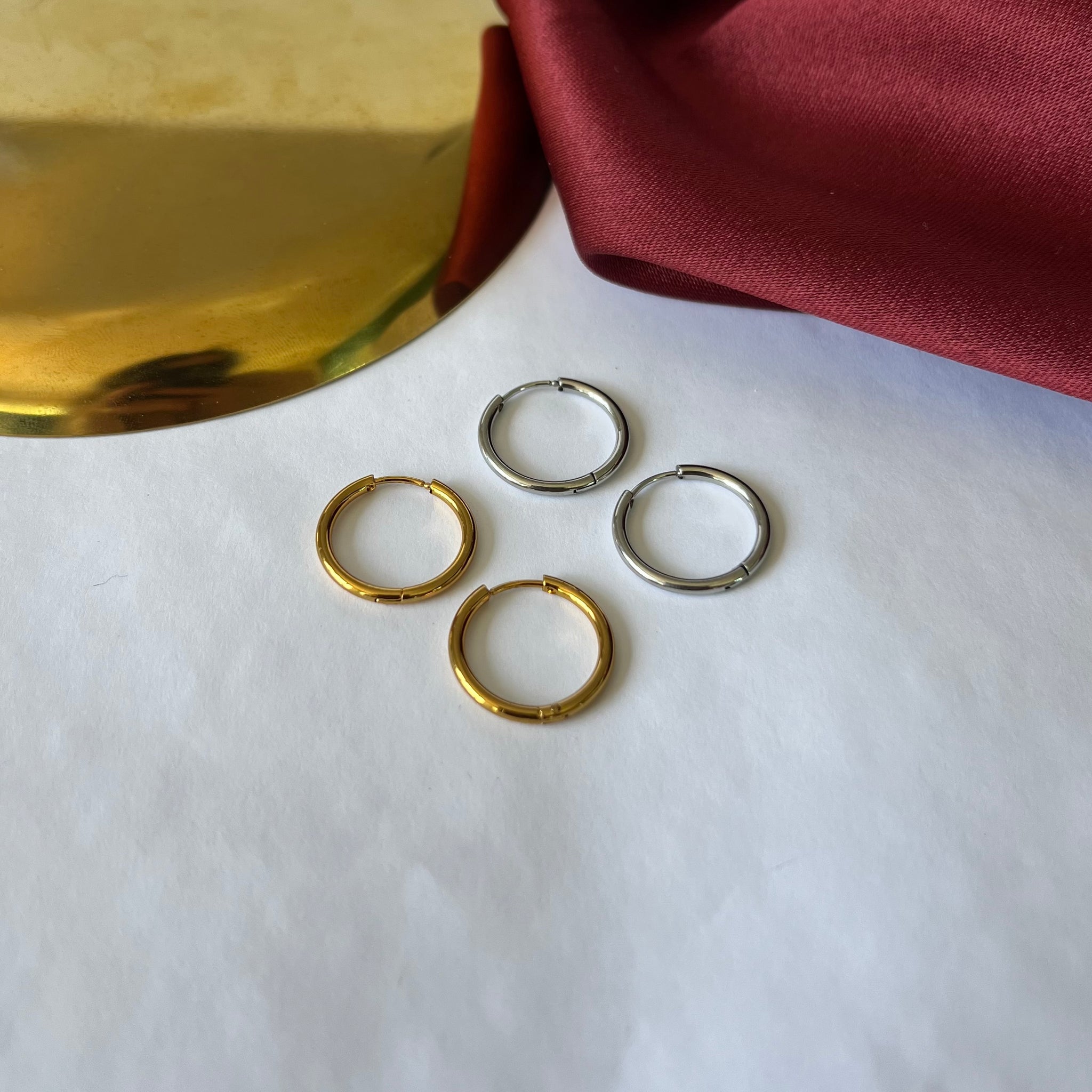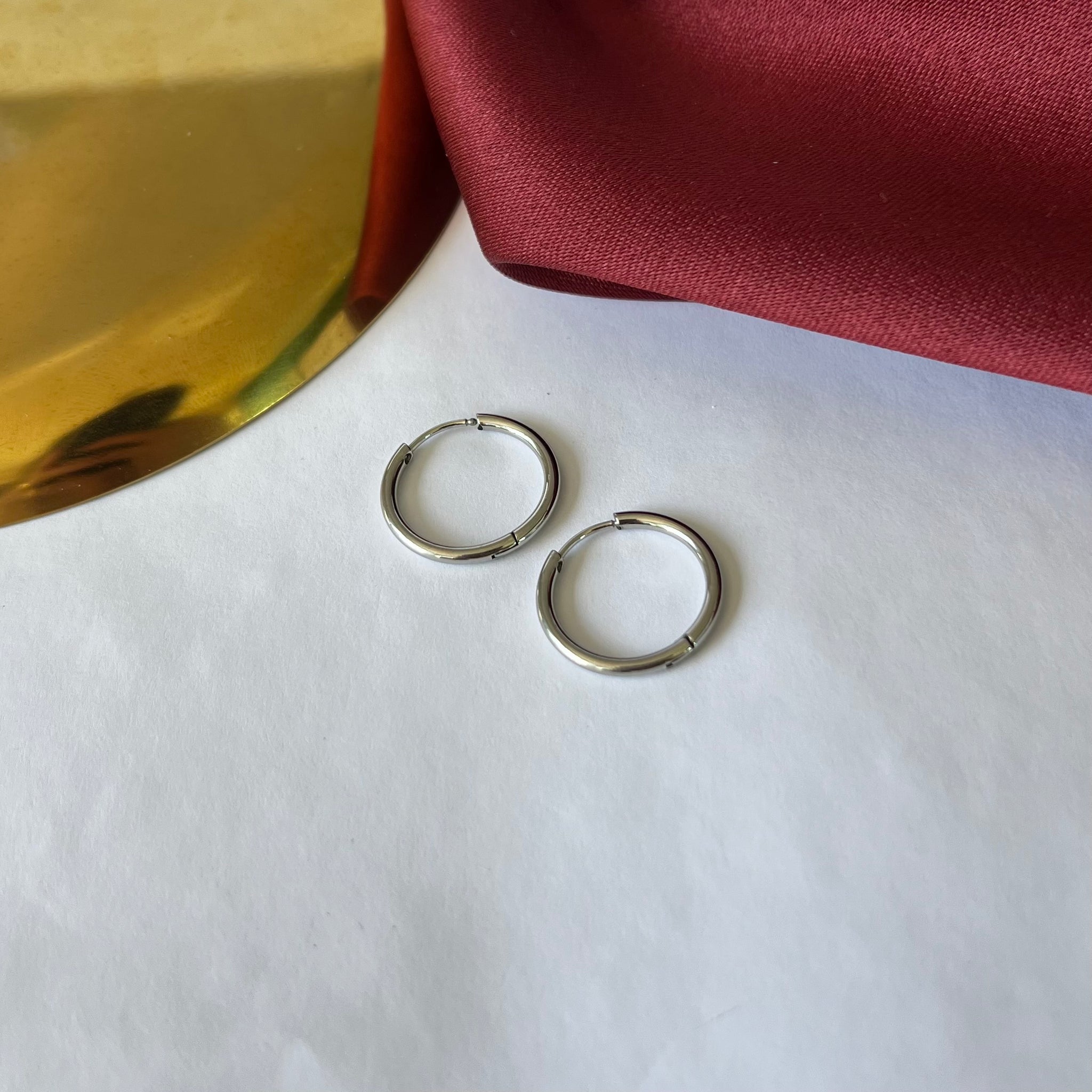 Brincos em aço inoxidável. Resistentes à água, hipoalergênicos e não escurecem nem descascam.