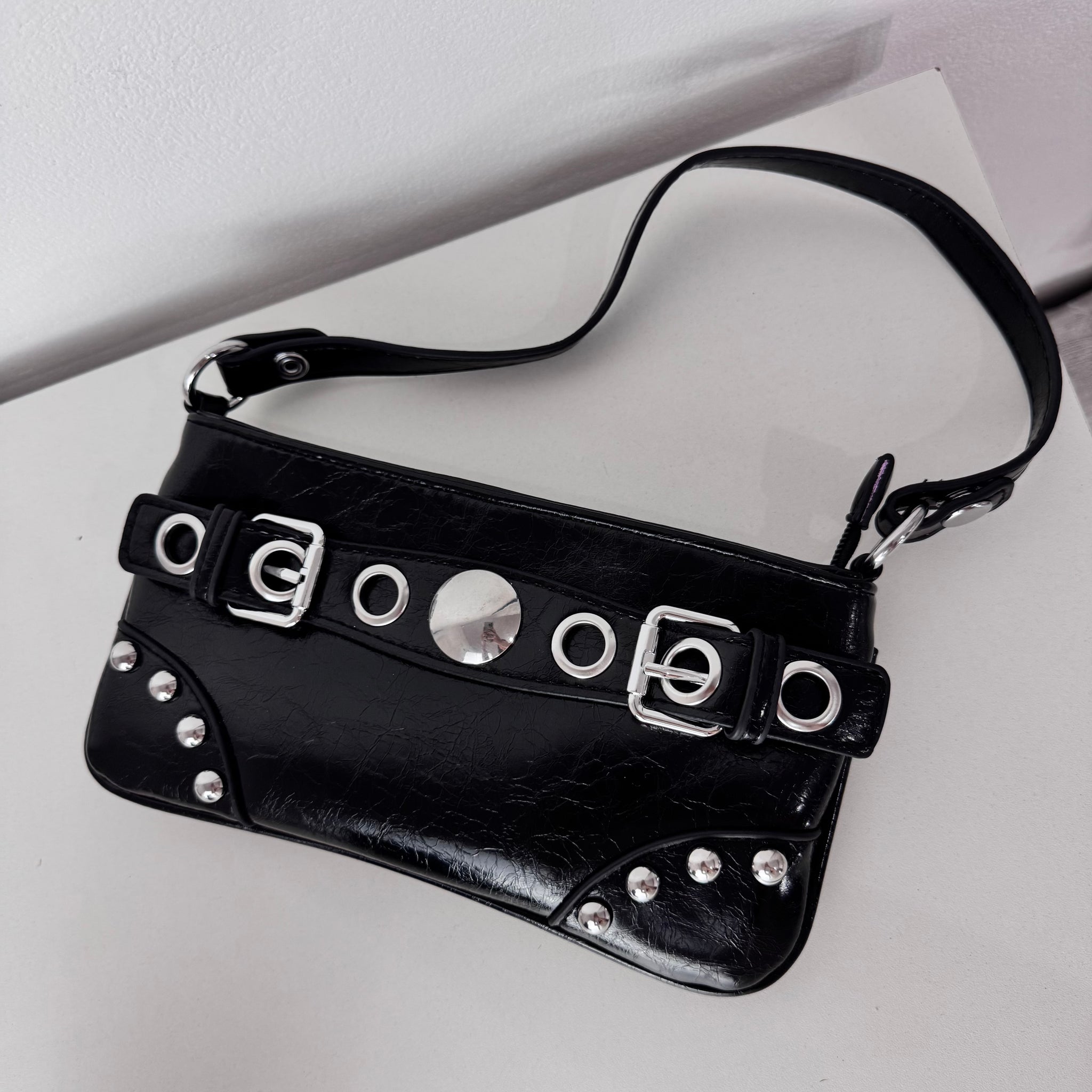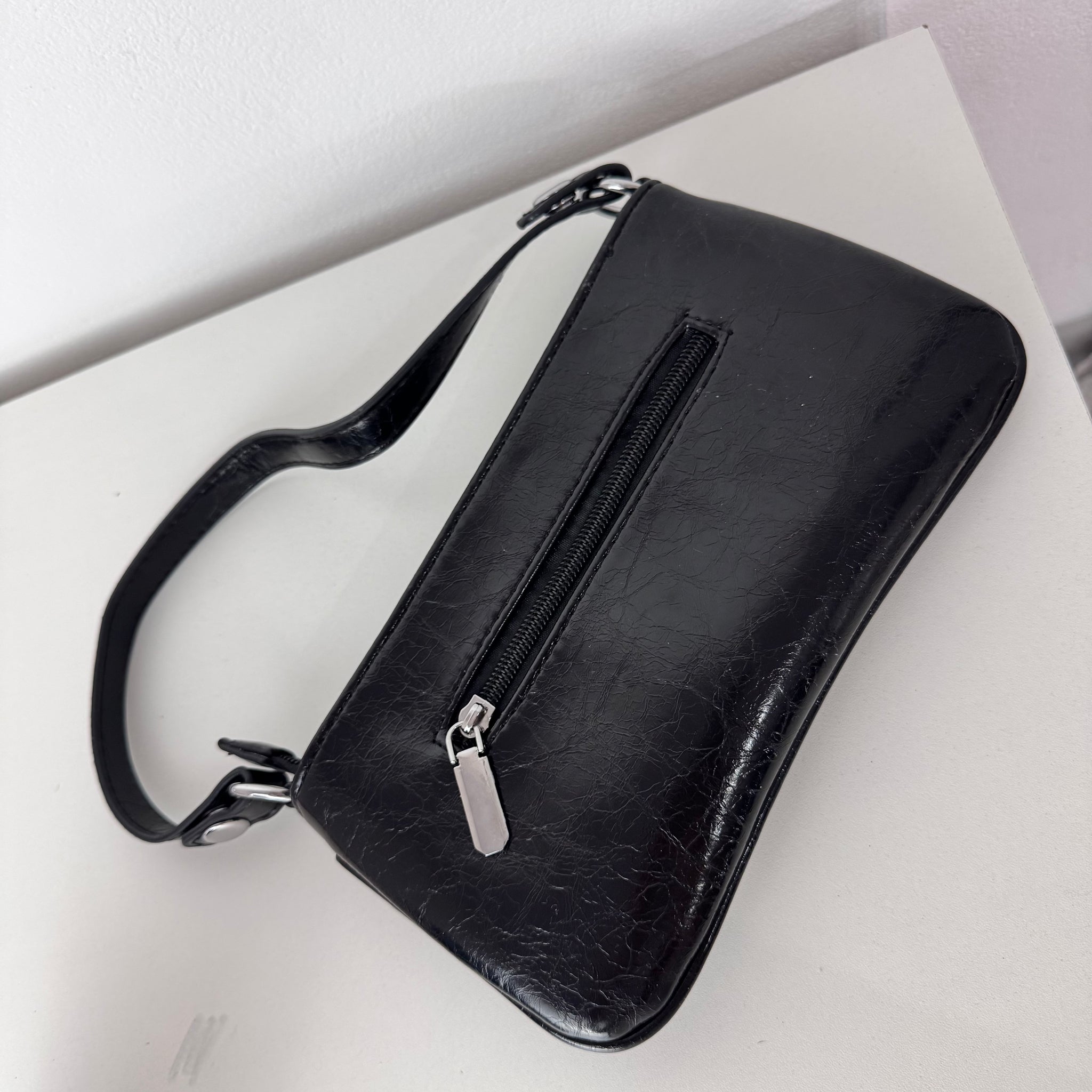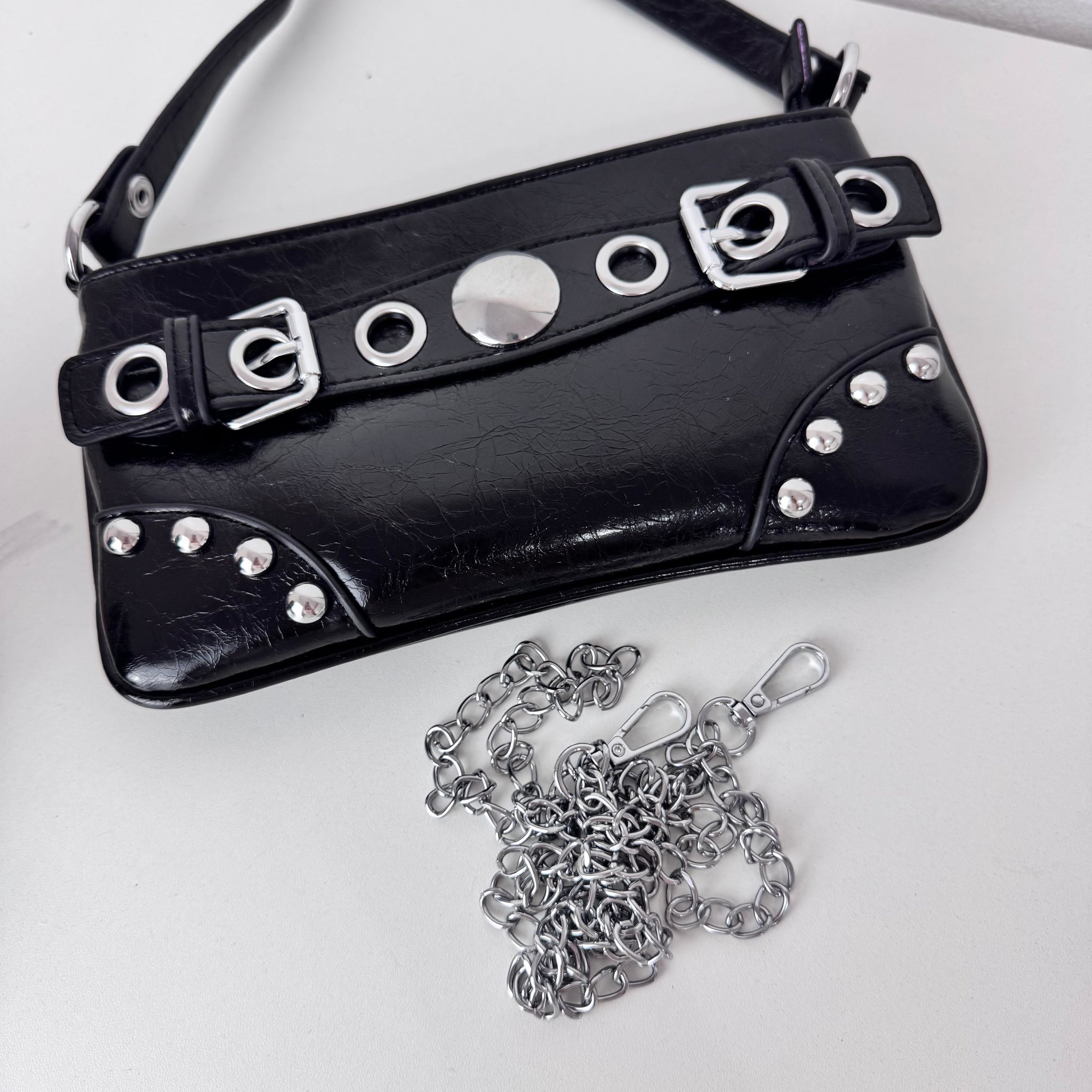 Bolsa Preta com detalhes prata, acompanha duas alças.